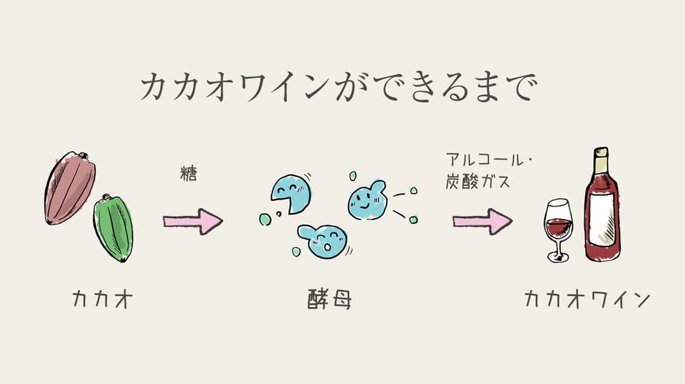 そして文字通り、『カカオのワイン』です。カカオで作ったワイン。