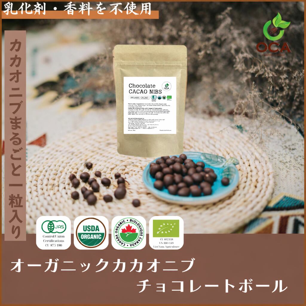 そんなカカオニブを手軽に、おやつ感覚で食べられる、カカオニブチョコレートボールができました。 カカオニブの周りをカカオ72%のオーガニックチョコレートでコーティングしているので、そのままおやつとしてお召し上がりいただけます。 いつでも、食べたいときにばくっと! ほとんど、何かにかけるだけでおいしく食べられるカカオニブですが、ティータイムやお出掛け先で、手軽にそのまま食べられたらなぁ~という気持ちを形にした、カカオニブチョコレートボール。 カカオニブを初めて試される方にも、チョコレートでコーティングされているので食べやすくておすすめです。