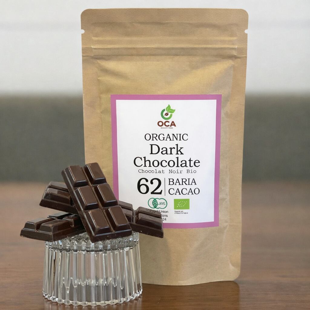 原材料 オーガニックダークチョコレート62%、オーガニックニブ、オーガニックパームシュガー、オーガニックカカオバター