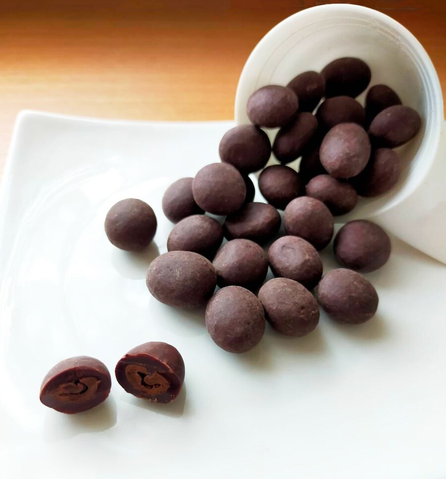 コーヒー豆は、ドリップ用のコーヒーとしても販売している、カカオコーヒーです。 豆の焙煎にカカオバターを使用して、手作業による繊細な温度管理の低温長時間焙煎をすることで、しっかりと深煎りしつつもコーヒー豆の香りも失っていません。 深煎りだけど芳醇な香りを残し、まろやかな苦みに仕上がったコーヒー豆を、カカオ62%のビター感&フルーティーな味わいのダークチョコレートでコーティングしたチョコレートボールは、コーヒーとチョコのアロマティックな香りと苦みを楽しんでいただける大人のおやつです。 甘みが少ないので、普段甘いものは食べない甘いものが苦手な方やブラックコーヒー好きな方におすすめです。 コーヒー豆とチョコレートのビターxビターな味わいで、ドライブの最中や、お仕事の休憩時に食べれば、気持ちがキリっと引き締まりそう。