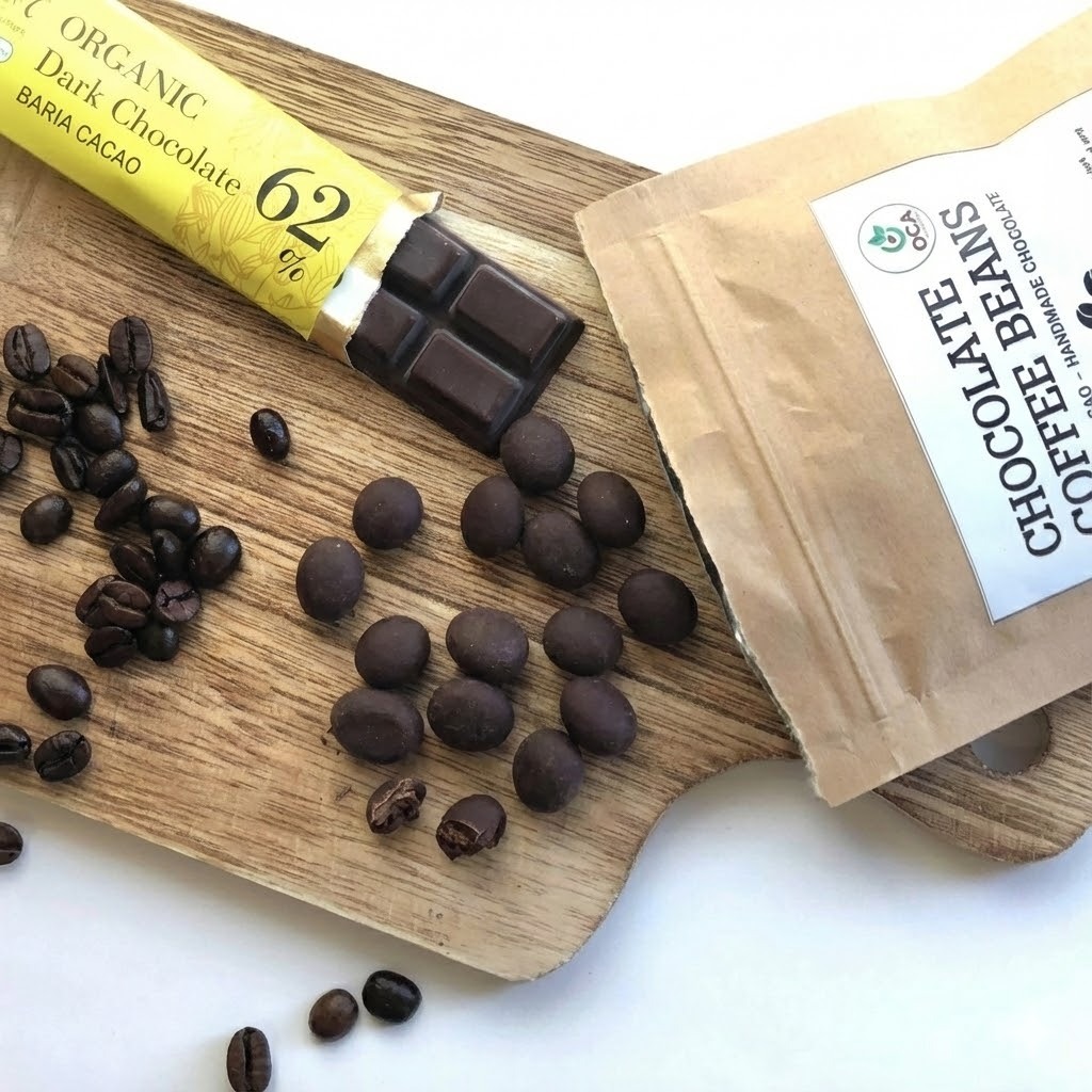 コーヒーの風味とほろ苦さ、そしてカリッとした食感が魅力的な、コーヒー豆チョコレート。 オリジナル焙煎を施したベトナム産コーヒー豆をそのまま、ダークチョコレート62%でコーティングしました。 ベトナム産のコーヒーの特徴は苦みと渋み。 コーヒーはとにかく濃い方が好き!という苦み好きの方にはぜひ味わっていただきたいビターxビターの組み合わせです。